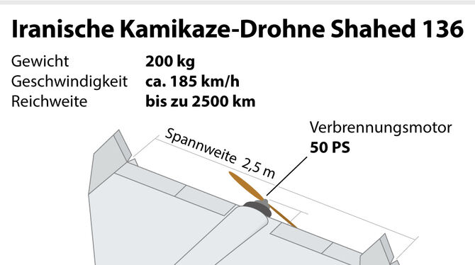 Die iranische Kamikaze-Drohne »Shahed 136« kam bei den Angriffen auf Israel zum Einsatz. Grafik: dpa