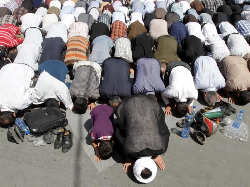 Mehr als 500 Iraner beten gemeinsam in Teheran, um gegen den Anti-Islam Film zu demonstrieren. Foto: Abedin Taherkenareh