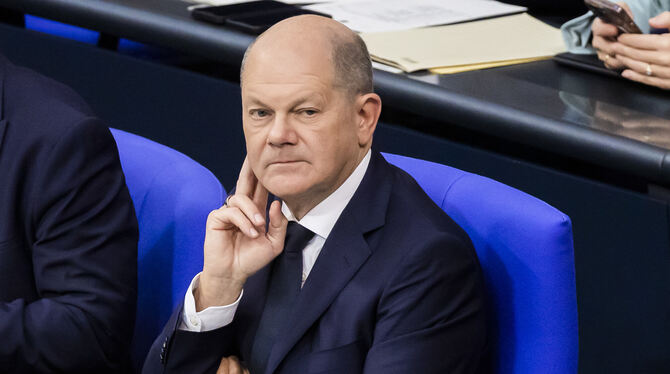 Will bei aller Hilfe für Israel auch die Unterstützung für die Ukraine nicht zurückfahren: Bundeskanzler Olaf Scholz (SPD) bei seiner Regierungserklärung. FOTO: SOEDER/DPA