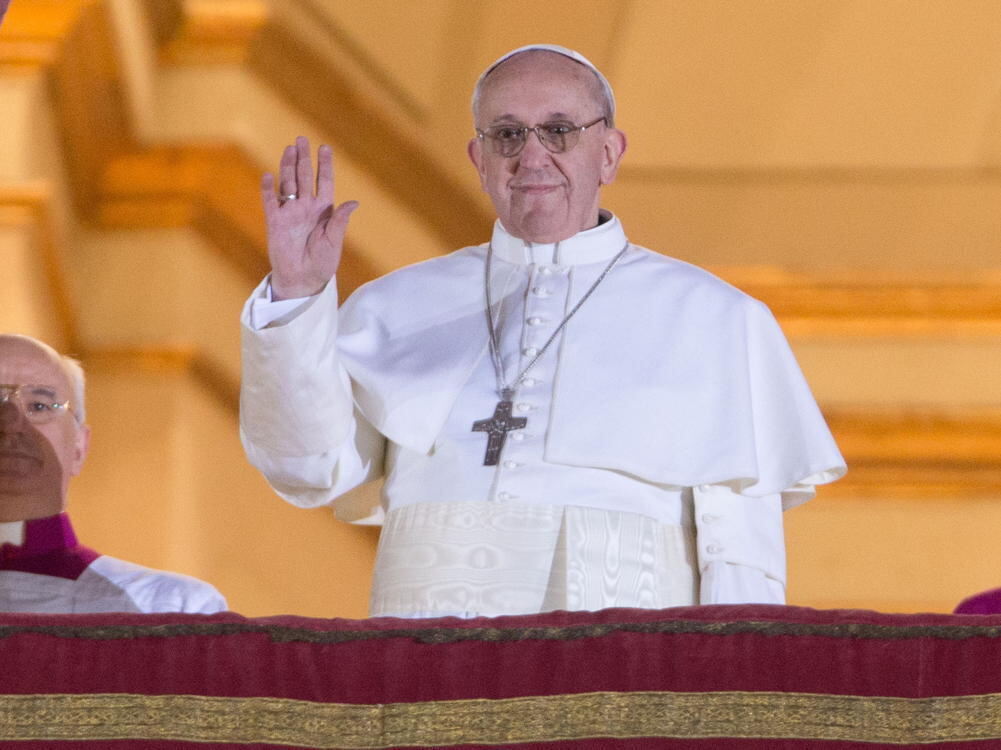 Kardinal Bergoglio winkt als neuer Papst Franziskus im Vatikan vom Balkon.