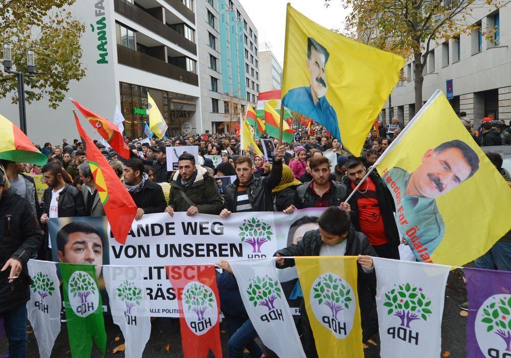Kurden demonstrieren in Stuttgart gegen Festnahmen führender kurdischer Politiker in der Türkei. Foto: Franziska Kraufmann/dpa