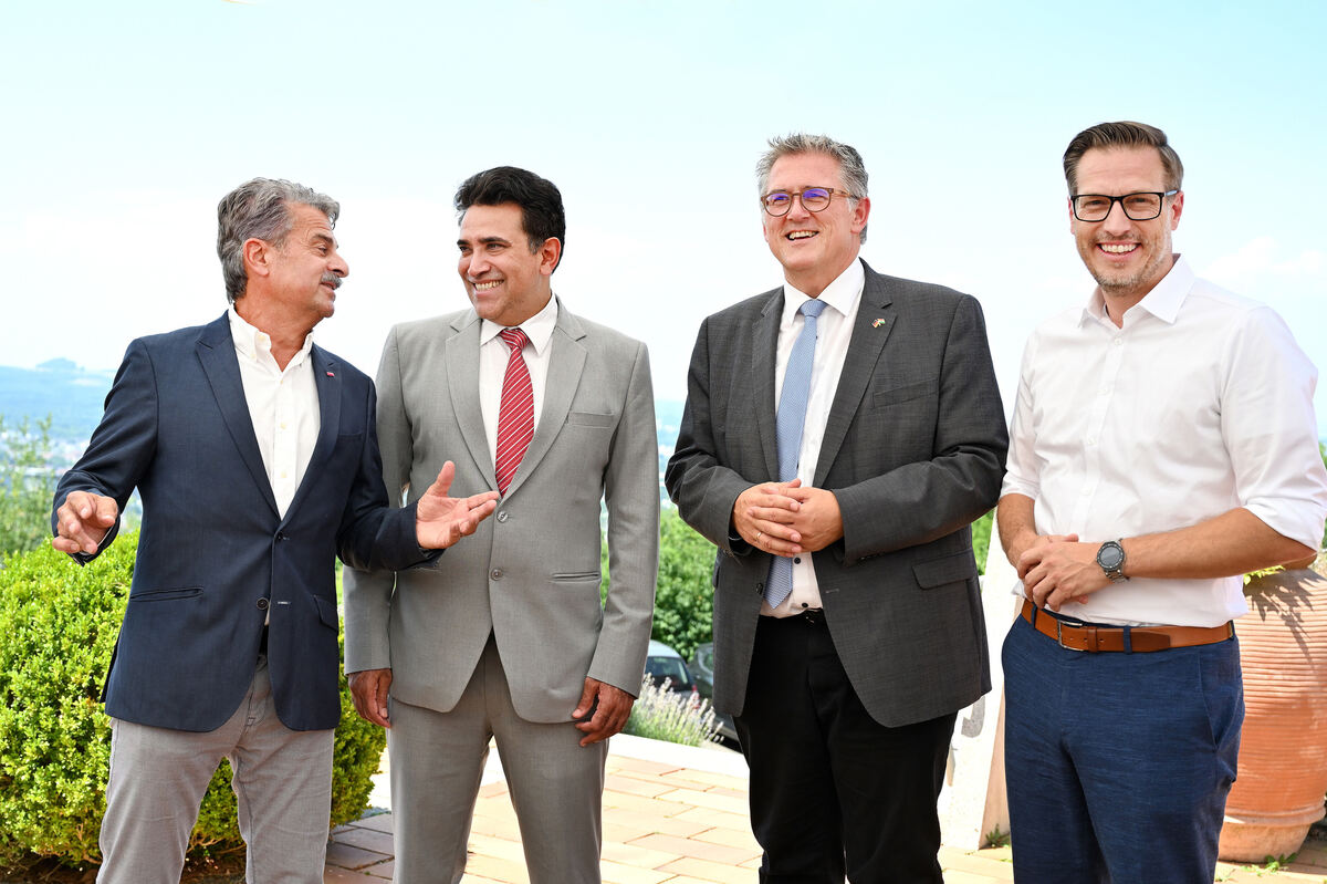 Mohit Yadav (2. von links), der indische Generalkonsul in München, zu Besuch auf der Achalm. Rechts neben ihm der CDU-Abgeordnete Michael Donth und Robin Morgenstern, Vorstandsmitglied der Jungen Unternehmer. Links neben Yadav Rainer Knauer. FOTO: PIETH
