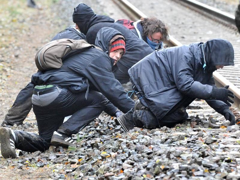 Atomkraftgegner »schottern« bei Dannenberg das Gleisbett.