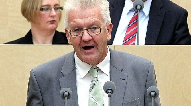 Der erste grüne Bundesratspräsident Winfried Kretschmann bei seiner Antrittsrede.
