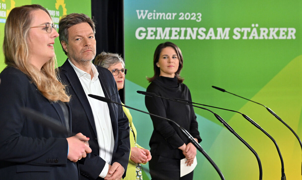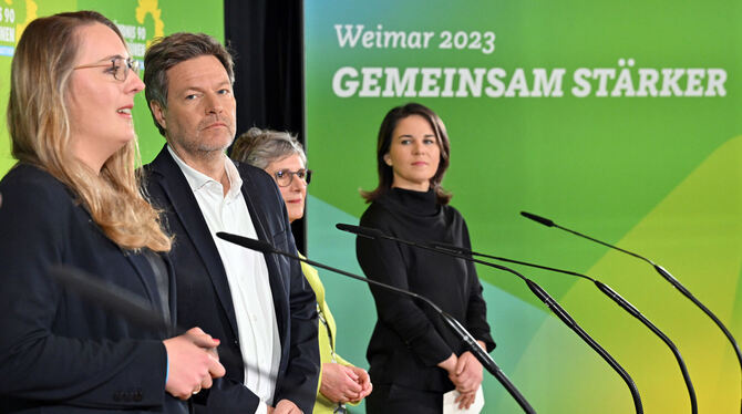Die Grünen in der Umfragekrise: Katharina Dröge, Robert Habeck, Britta Haßelmann, Annalena Baerbock (von links).