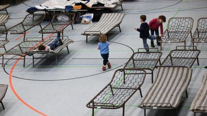 Flüchtlingskinder spielen in der zur Notunterkunft für Asylbewerber umfunktionierten Frankenhalle in Neustadt bei Coburg. Foto: David Ebener/Archiv