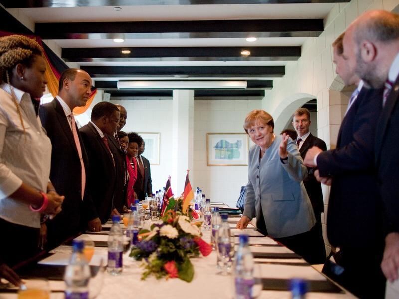 Bundeskanzlerin Merkel während einer kleinen Vorstellrunde in Nairobi.