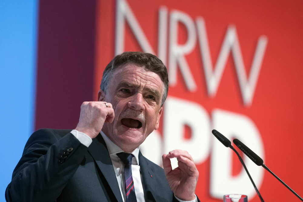 Der designierte SPD-Landesvorsitzende Michael Groschek spricht am 10.06.2017 in Duisburg (Nordrhein-Westfalen) in der Mercatorhalle. Nach der Wahlniederlage stimmt die Landespartei bei einem außerordentlichen Parteitag in Duisburg über die Nachfolge von Hannelore Kraft ab. Foto: Federico Gambarini/dpa