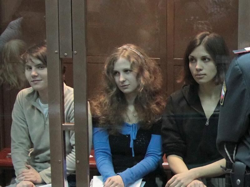 Pussy-Riot-Mitglied Jekaterina Samuzewitsch (l.) kommt wieder auf freien Fuß - Maria Aljochina und Nadeschda Tolokonnikowa (m. und r.) müssen ins Straflager. Foto: Maxim Shipenkov