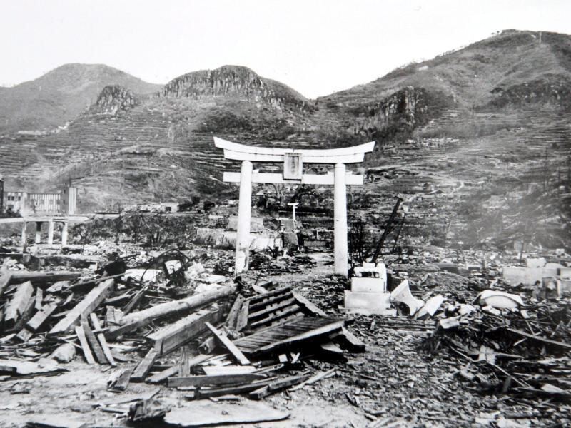 Eine Straße in Nagasaki nach dem Abwurf der Bombe. Durch die Explosion starben etwa 74 000 Menschen, 75 000 weitere wurden verletzt. Foto: Nagasaki Atomic Bomb Museum