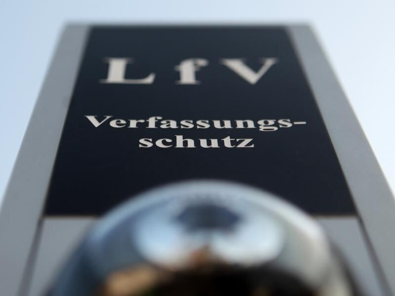 Türklingel mit integrierter Überwachungskamera im Eingangsbereich eines Landesamtes für Verfassungsschutz. Foto: Fredrik von Erichsen