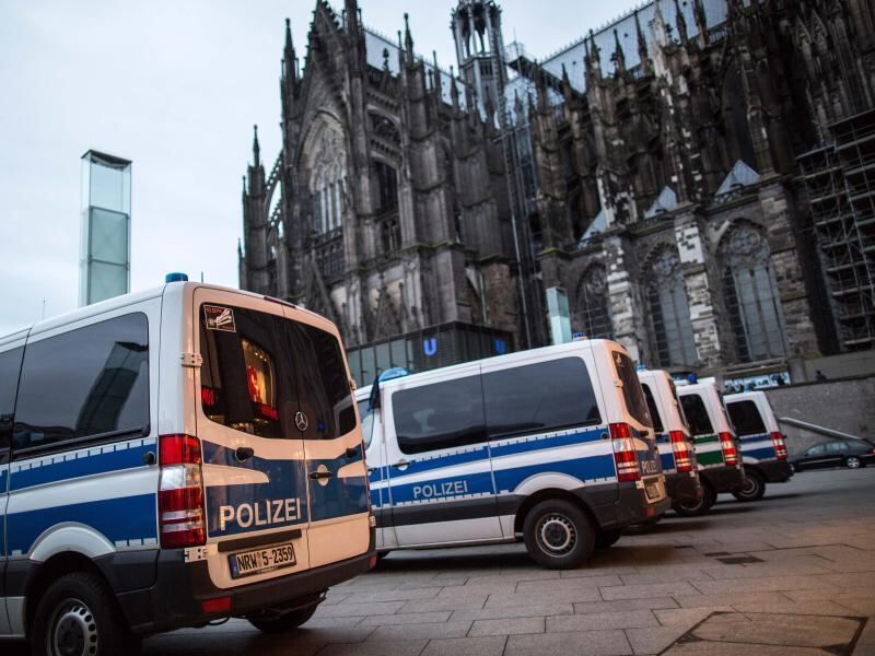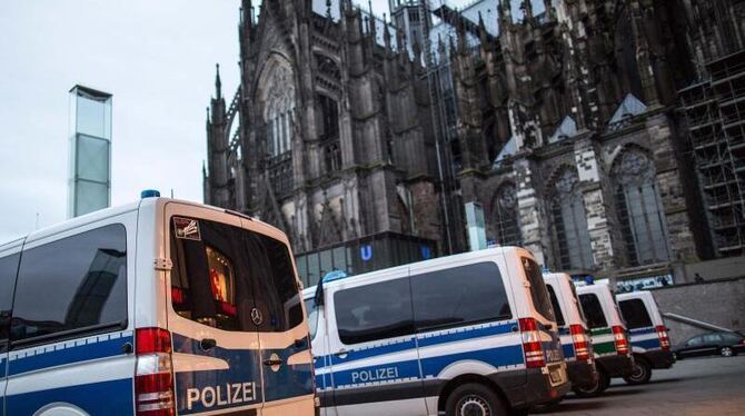 Polizeiwagen stehen vor dem Hauptbahnhof und dem Domin Köln. Foto: Maja Hitij
