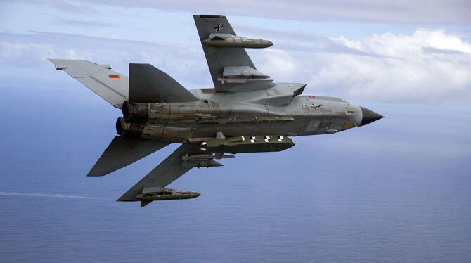 Die von der Bundeswehr herausgegebene Aufnahme zeigt einen Kampfjet Tornado IDS ASSTA 3.0, bestückt mit dem Lenkflugkörper Taurus, der im Rahmen der Übung »Two Oceans« über See fliegt.