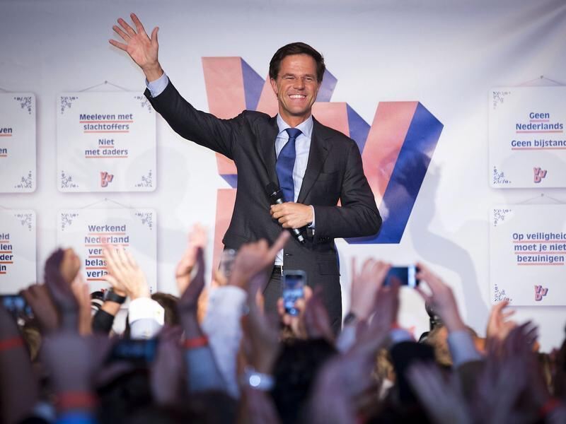Der niederländische Ministerpräsident Mark Rutte feiert seinen Wahlsieg. Foto: Evert-Jan Daniels