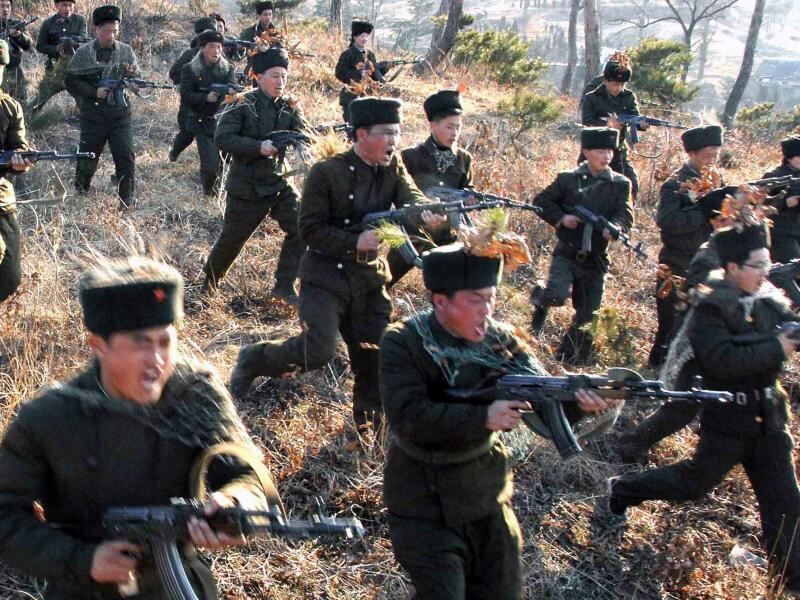 In Droh-Pose: Mitlieder der nordkoreanischen Arbeiter- und Bauerngarde. Foto: KCNA
