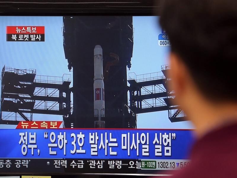 Ein Südkoreaner verfolgt den Raketenstart im Fernsehen. Foto: Yonhap