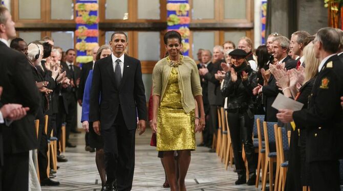 Viel Beifall in Oslo für Friedensnobelpreisträger Barack Obama und seine Frau Michelle.