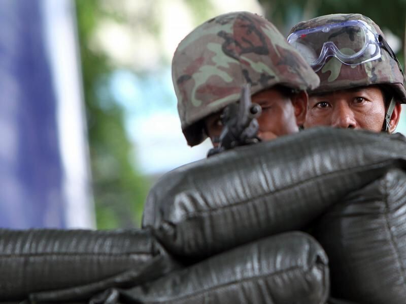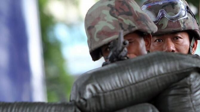 Soldaten nehmen die Regierungsgegner im Zentrum von Bangkok ins Visier.