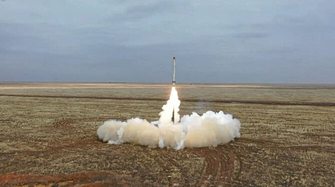 Eine Iskander-K-Rakete während einer Militärübung in Russland. Sie kann mit Atomsprengköpfen bestückt werden. FOTO: DPA