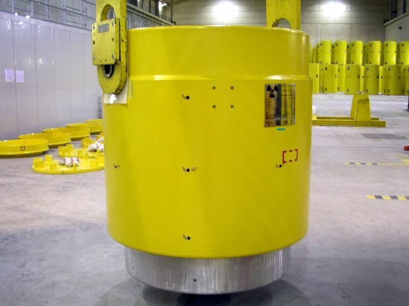 Ein Castor-Behälter steht im Lagerbereich des Zwischenlagers Ahaus. (Archivfoto von 2005)