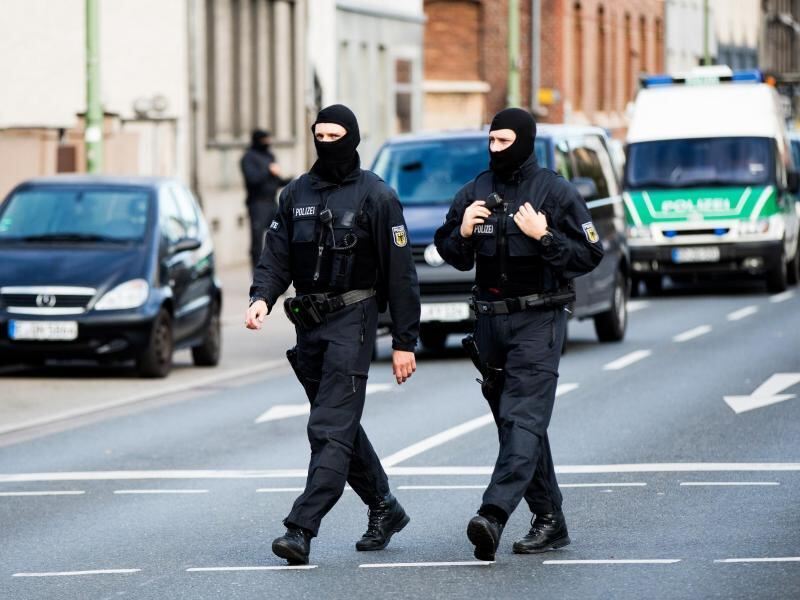 Maskierte Beamte der Bundespolizei in Essen. Foto: Marcel Kusch