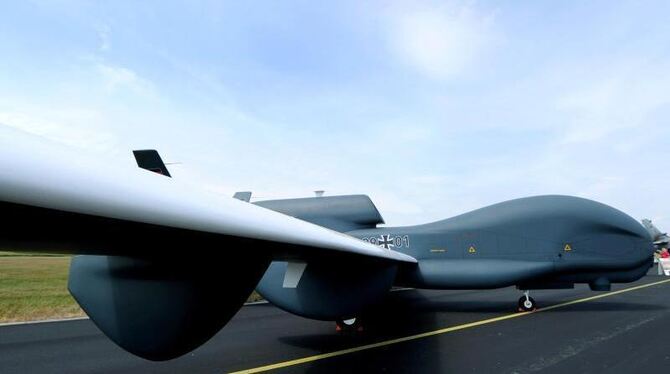 Lebensgroßes Modell der Drohne »Euro Hawk«. Nach dem Drohnen-Debakel werden Regressforderungen laut. Foto: Angelika Warmuth/Archiv