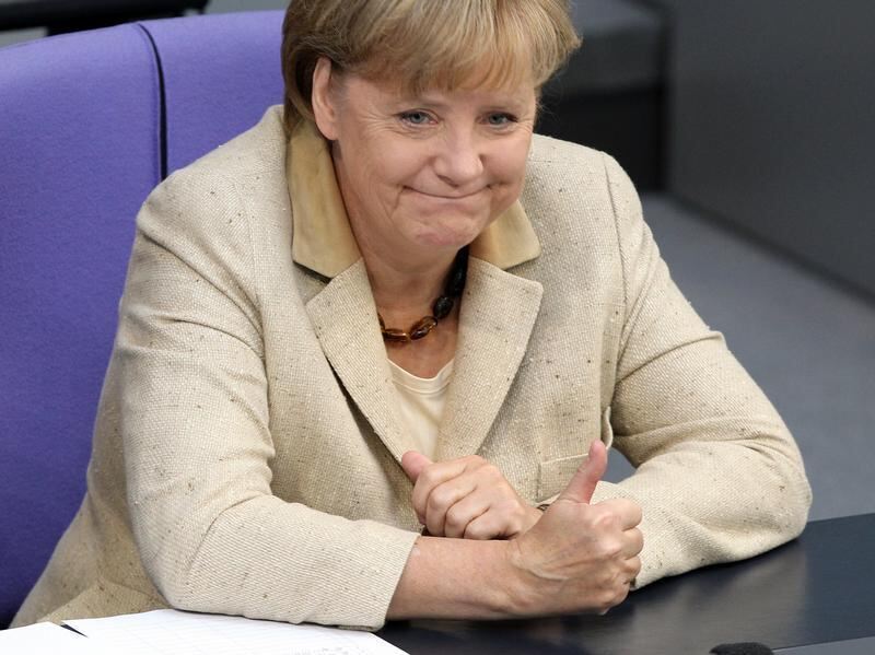 Angela Merkels Daumen geht hoch. Foto: dpa