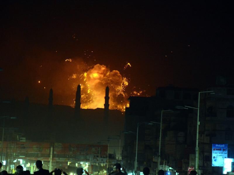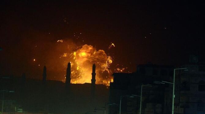 Bei einem Luftangriff auf Sanaa im Jemen explodiert ein Waffenlager. Foto: Jaber Ghurab