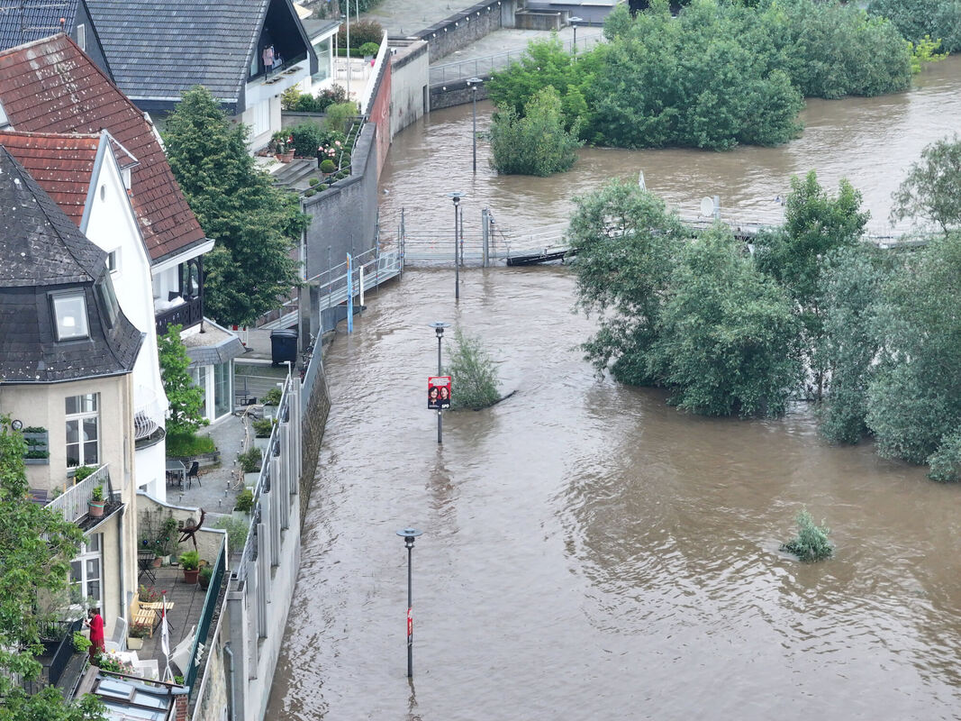 Die Überflutungen richten in Deutschland derzeit wieder immense Schäden an. Eine Pflichtversicherung ist im Gespräch. FOTO: THELEN/DPA