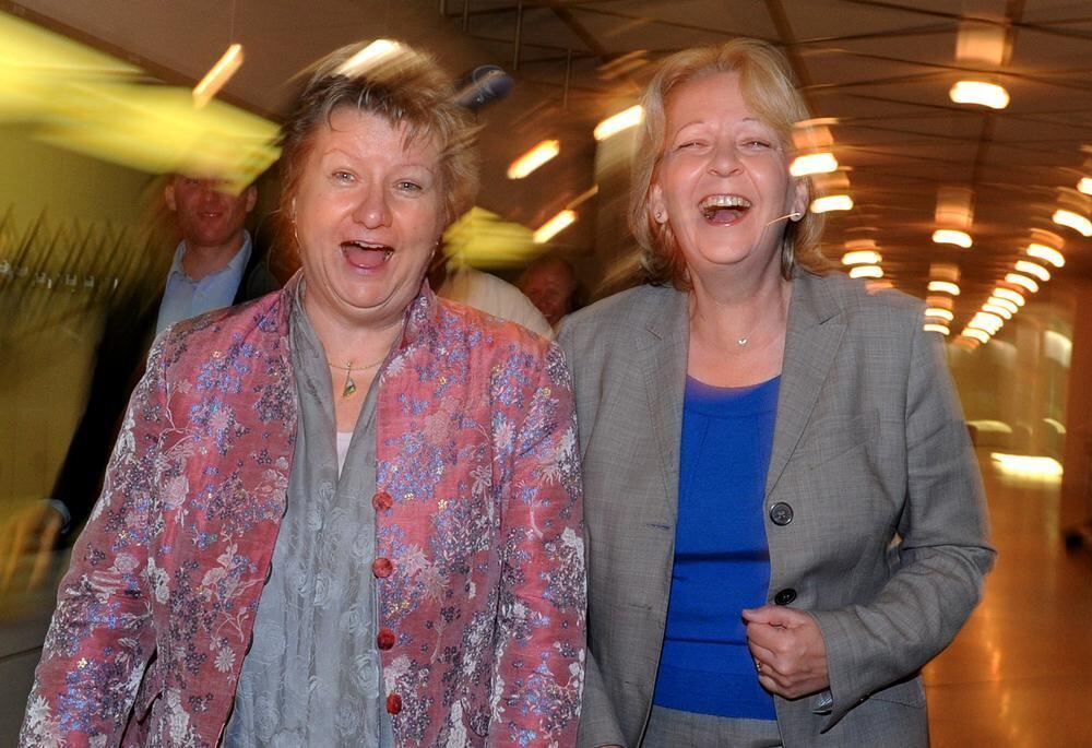 Die Landesvorsitzende der NRW-SPD, Hannelore Kraft (rechts), und die Fraktionsvorsitzende der NRW-Grünen, Sylvia Löhrmann.