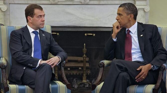 US-Präsident Barack Obama im Gespräch mit seinem russischen Amtskollegen Dmitry Medwedew (l).