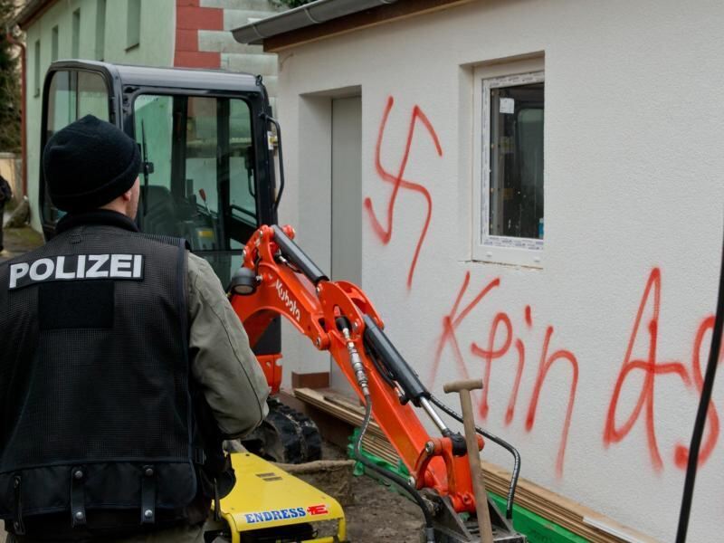 Unbekannte haben ein Flüchtlingsheim im bayerischen Vorra mit einem Hakenkreuz und rechten Parolen beschmiert. Foto: Daniel Karmann/Archiv