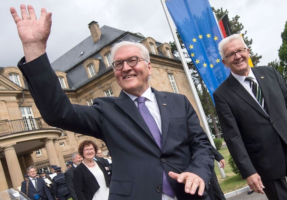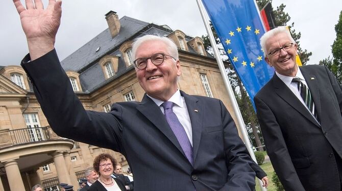 Bundespräsident Frank-Walter Steinmeier vor der Villa Reitzenstein in Stuttgart.