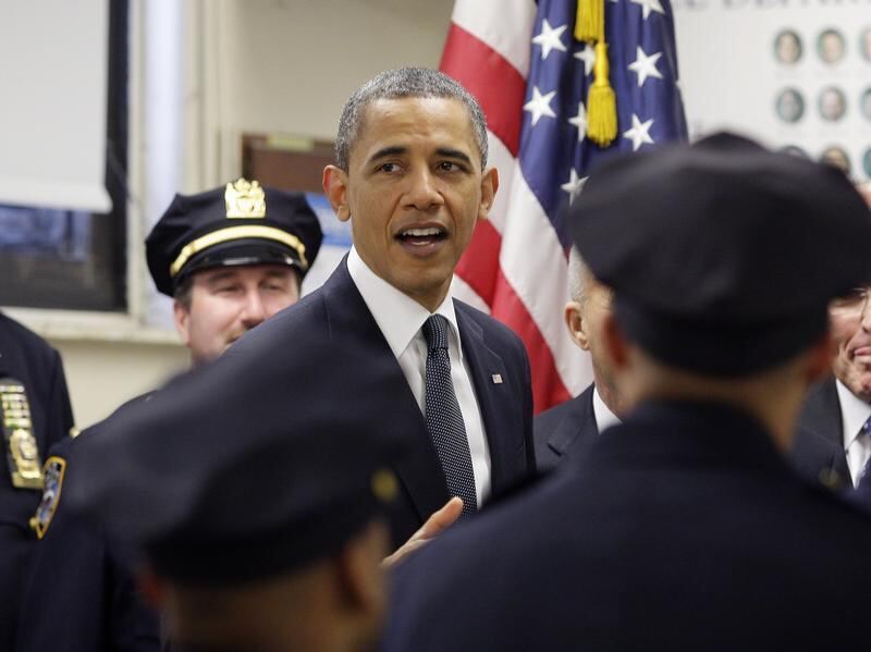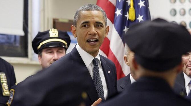 US-Präsident Barack Obama im Gespräch mit New Yorker Polizisten. 60 von ihnen starben bei dem Attentat vom 11. September 2001