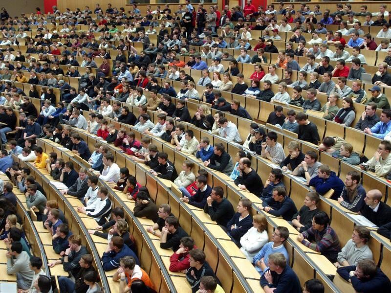 Voller Hörsaal an der Karlsruher Universität Fridericiana.
