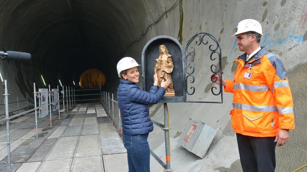 Tülay Schmid mit der Heiligen Barbara, der Schutzpatronin der Tunnelbauer.