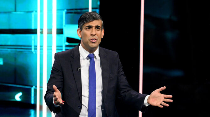Punktsieg für Premierminister Rishi Sunak. FOTO: JONATHAN HORDLE/ITV/PA MEDIA/DPA