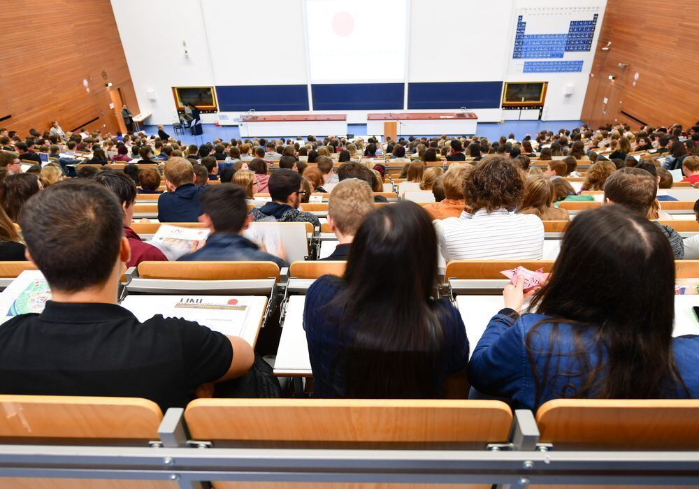 Studenten in Heidelberg an der Universität bei der Begrüßung der Erstsemster-Studenten in einem Hörsaal. Foto: dpa