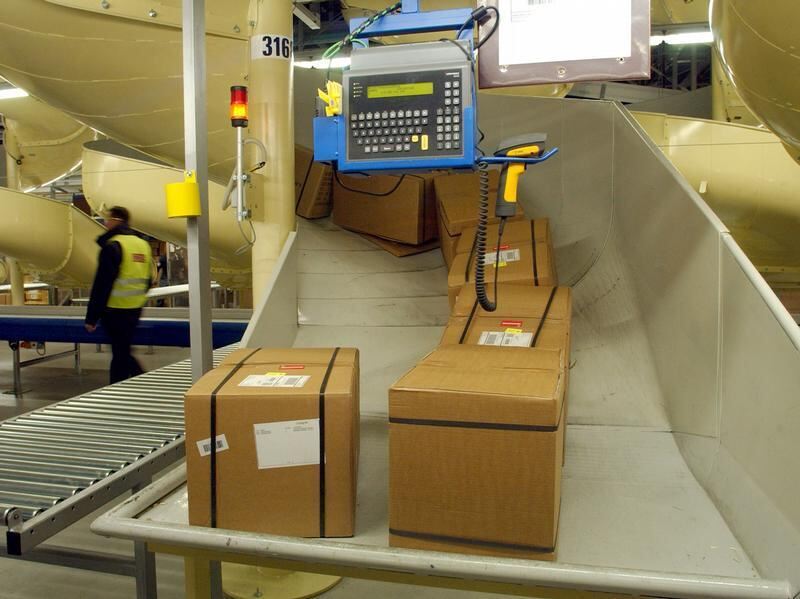 Luftfrachtpakete liegen auf einer Transport-Rutsche (Symbolbild). Das Luftfahrtbundesamt hat laut einer Pressemeldung bei der Inspektion von Versendern zum Teil gravierende Sicherheitsdefizite festgestellt.