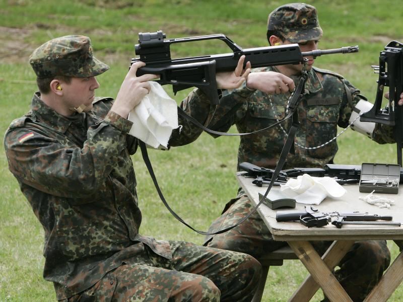 Grundausbildung: Wehrpflichtige zerlegen G36-Gewehre in ihre Einzelteile und reinigen sie. Foto: Frank May/Archiv