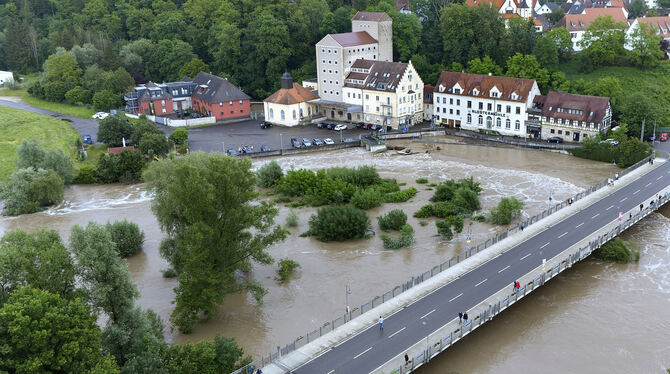 Hochwasser allenthalben. Wie hier beim Neckar in Reutlingen-Mittelstadt.
