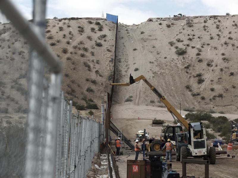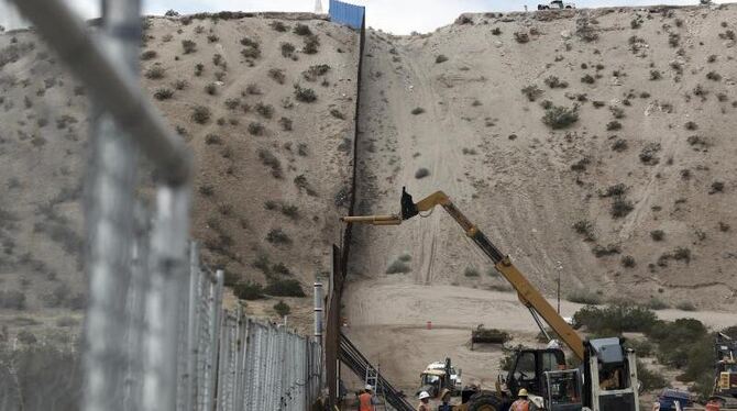 Arbeiter bauen im vergangenen Novmeber an der Erhöhung des Grenzzaunes zwischen USA und Mexiko. Foto: Christian Torres