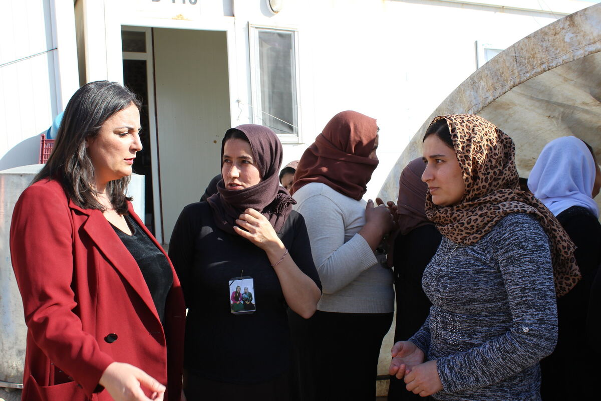 Düzen Tekkal (links) zusammen mit Jesidinnen, die unter der IS-Terrorherrschaft schlimmste Schicksale erlitten haben. FOTO: HAWAR.HELP