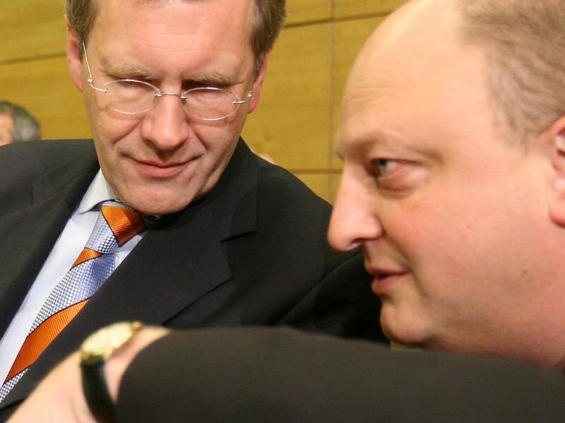 Der damalige niedersächsische Ministerpräsident Christian Wulff und sein Pressesprecher Olaf Glaeseker Foto: Jochen Lübke/Archiv