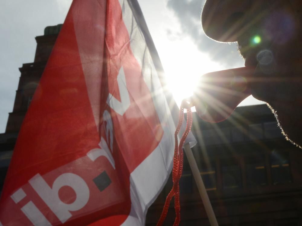 Warnstreik mit Trillerpfeife und Verdi-Fahne.