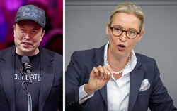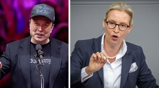 Ziemlich beste Freunde: Elon Musk und Alice Weidel. FOTOS: VUCCI/NIETFELD/DPA