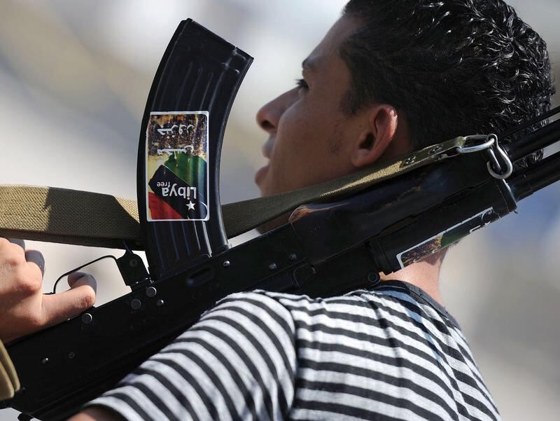 Ein bewaffneter Junge in Tripolis an einem Checkpoint der Rebellen.