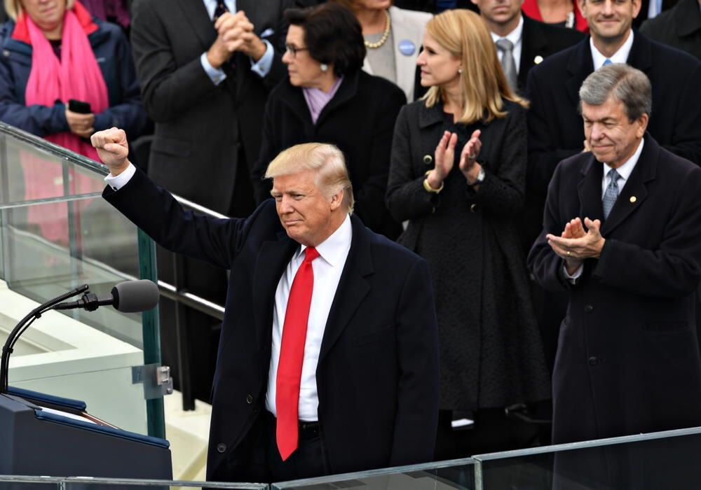 Der neue US-Präsident Donald Trump ballt seine Faust, nachdem er in Washington, USA, seine Eröffnungsrede nach seiner Vereidigung gehalten hat.