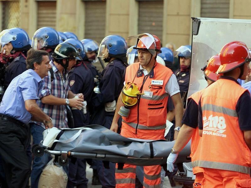 Tiefpunkt der Gipfel-Geschichte: Beim G8-Treffen in Genua 2001 wurde ein junger Demonstrant erschossen. Foto: Filippo Monteforte