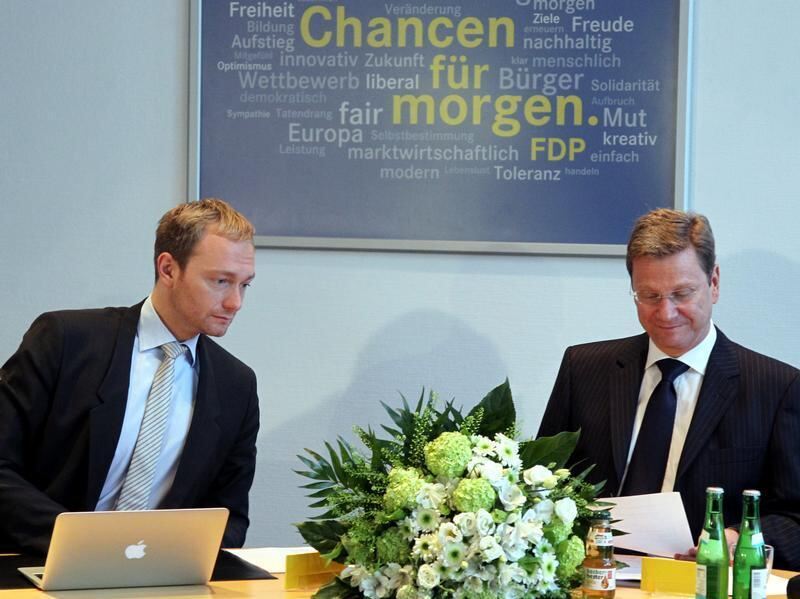 Der Vorsitzende der FDP, Guido Westerwelle (r), und der Generalsekretär der Liberalen, Christian Lindner.